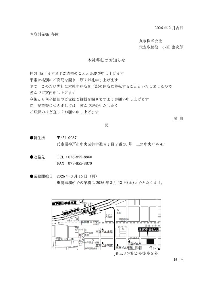 このたび弊社は本社事務所を下記の住所に移転いたしました。